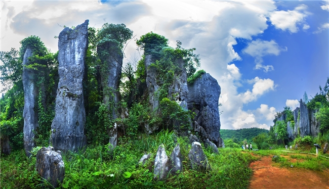 峰丛石林,千姿百态:在洛塔景区,石林群集,造型奇特。有的如“火箭待发”,有的似“海豹观天”,更有无数藤蔓植物缠绕其上,为刚硬的石峰增添了生命的柔美与灵动。