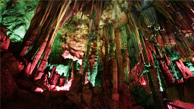 溶洞密布,地下迷宫:龙山大峡谷内密布着212个溶洞,被誉为“世界溶洞博物馆”。这些洞穴上下叠置,纵横交错,形成了独特的层楼式结构。洞内石笋、石柱、石幔、石花等化学沉积物类型多样,千姿百态,构成了一个个神秘的地下世界。